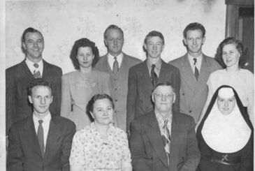 Our mother Frances’ maiden name was Smith, our grandmother’s maiden name was Brugger. There is plenty of information about both the Brugger family than the Smith family. Both families settled in the Springfield, Mo area. My mother was the 3rd child of 8 children of Vincent Aloysius and Theresa Freda (Brugger) Smith. Both are descendents of German heritage. Grandpa worked at Meeks Lumber. Grandpa coached several of his sons in the city baseball league. If anyone knows the name of the team, please let us know and it will be added to this page. Grandpa Smith worked last at Queen City Woodworks on the North Side in Springfield. He was the engineer for the plant as all the machinery was taken care of in-house. They made furniture. Previous to that, Pops had a small grocery store. In Springfield, every 8 blocks there was a small grocery store. He would extend credit to people as the times were hard. When Grandpa would walk down the street, people who owed him money would cross the street to avoid him. That made him very sad. Grandpa also had a bar sometime before the grocery store. Grandpa died of complications of pneumonia. The story behind it is that he was taken to St John’s hospital and when the orderlies transferred him from the gurney to the bed they dropped him onto his back on the floor. Uncle Joe was there and saw it and was very angry with the staff. Joe blamed Grandpa early demise on the results of that fall. He said the fall hurt Grandpa bad. He wanted Grandma to sue St Johns’s but she didn’t want to as it was the catholic hospital. Grandpa and Grandma had 8 children, 5 boys/3 girls: Joseph Vincent, Mary Catherine, Frances Agnes (Mom), Walter Henry, Paul Stephen, Lawrence Albert, Elizabeth Theresa (Sister Mary Beata), Eugene Martin. All the Smith boys were gifted baseball and fast pitch softball players. In a sign of those times, Mom told us that she never got to finish high school because grandpa wanted the girls to find jobs until they found someone to marry. The boys however, were required to finish high school, except Joe, because they would be the bread winners in their ultimate families. Joe quit school after 10th grade at St. Joseph’s only on the condition that he enroll in an engineering course through the mail called Audells. It took him two years to finish and Grandpa only allowed Joe to quit if he did that course. Joe went to work with Grandpa helping out at 10 cents per hour and 10 hour days. He made a dollar a day and was very happy with it. Mom was working as a nurse’s aide at O’Reilly Army Hospital in Springfield when she met Dad. Aunt Catherine worked that Springfield Table Co and never married. The Springfield Table Co made, among other paper products, the Big Chief Table that most of America used in elementary school. Elizabeth (Betty) entered the convent and became a nun and adopted the name “Sister Mary Beata”, teaching at various schools in Missouri. Uncle Joe worked at the US Federal Medical Center for Prisoners as a maintenance superintendent. Originally the Federal Prisons were supposed to be self supporting; that is, they grew their own vegetables, slaughtered cows and pigs, etc. Uncle Joe’s job was to keep all the machinery running, including the elevators. Uncle Walter was an insurance adjuster. Uncle Paul was part owner and manager of Burgess Paint Store and an ardent New York Yankee fan. Uncle Uncle Paul died of stomach cancer. Uncle Joe and Uncle Paul were very close, having spent years hunting together and raising dogs. A very tender story about Paul’s death is that Joe went over to see him at his house. As Joe walked into the room where Paul was in bed, he said it smelled of death. Paul’s stomach was very extended. As dad talked to Paul, Paul reached up and grabbed dad in a bear hug, pulled him down, and said, “I love you Joe”. He died right after that. Uncle Larry was an agent for Ozark and Delta airlines. Uncle Gene worked in sales for Sears and Roebuck. 5 of the siblings died of differing forms of cancer. Grandma died from cancer as well. Only 2 died of natural causes, Uncle Joe and Mom. Aunt Betty (Uncle Larry’s wife) is our sole remaining aunt/uncle from the family. She lives in Springfield and is doing quite well (a/o 2011). In the summer of 1962, I (John) graduated from HS and went Springfield to find a job, but ultimately joined the Air Force. When I left in Sept ’62, Grandma was in good health. About a year or so later, she was diagnosed with cancer and diabetes. She eventually lost blood circulation to her leg and it was eaten up with gangrene. She had the leg amputated just above the knee. She died in 1965 and I never got a chance to see her after I left for the AF. My cousins said that I was fortunate to not see her as she had suffered quite a lot in her last days. It was a very sad time for me as I had a close relationship with her throughout my life. The loss of Aunt Catherine hit me pretty hard for the same reason. I spent many summers with them and I’m very grateful for their love and kindness. Aunt Fanny, Grandma’s sister (Frances) lived with them during those days and was always fun to be around. She had several names for me and used my name in some stories she would tell. Some names she lovingly called me: Johnny Jump Up and Johnny Be Good. One rhyme I often remember is: Johnny, Johnny, kissed the girls and made them cry. When we went to ballgames, she would point out rundown vacant houses and say that “That’s Superman’s House”, or the “Buggyman lives there”. When I was really young, I believed her. Aunt Fanny never missed an episode of “The Grand Ol’ Opry”. Her favorite person on the show was Minny Pearl. Of course, all TV was black & white in those days.