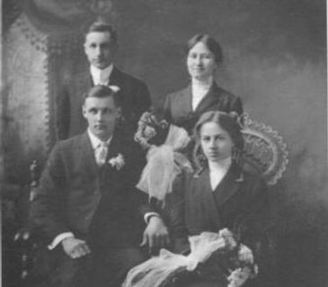 Richard Brugger, brother of Sigmund, came to the US before 1888. His wife was Anna M. Hilby. They married in Hannibal, Mo. They moved to Springfield in 1891. Richard wrote to Sigmund in Germany, asking him to come to Springfield to live. Sigmund and Katharina, with baby Theresia, came to the US and Mo sometime in 1893. A second Daughter, Karolina, may have been born on-board the ship on the way to the US. The 3rddaughter, Maria (Mary) and the 4th, Florence, were born on S. Jefferson. Louise, Frances, Carl, and Margarette were born on Lynn St, near Kansas Ave. Josephine was born on Calhoun St in what was later known as the Brugger homestead. The plot of land was later divided up and among 4 of Theresa’s children, Joe, Larry, Walter, and Gene. Catherine lived in the family home until she died in 1998. In September 1906, Sigmund became a citizen of the United States. In those days, when a husband became a citizen, the wife and children also became citizens. In 1908 Mother Katarina had a stroke and was sick for about 5 years. In her later years, she was bedfast. She died of a brain tumor. Grandma Theresa was 22. On the day she died, Grandma had gone to the store to select her wedding dress. Sigmund owned the Palace Saloon, located on Commercial St. It must have been a good business to employ 4 workers. Sigmund may also have owned or worked at the Kirby Arcade for a number of years. On July 30, 1916, in a group known as the “German Singers” were traveling to sing at a picnic in Golden City, Mo. Sigmund was a member of the group and was killed in an automobile accident that day. Observers following his vehicle, that he was driving, said that the car was traveling about 25 mph and suddenly began zig/zaging from side to side and flipped over pinning Sigmund under the “turtled” vehicle to an almost immediate death. At the time of his death, Theresa, Mary, and Florence were married. Theresa and Vincent took over the responsibility of raising the remaining Brugger children.